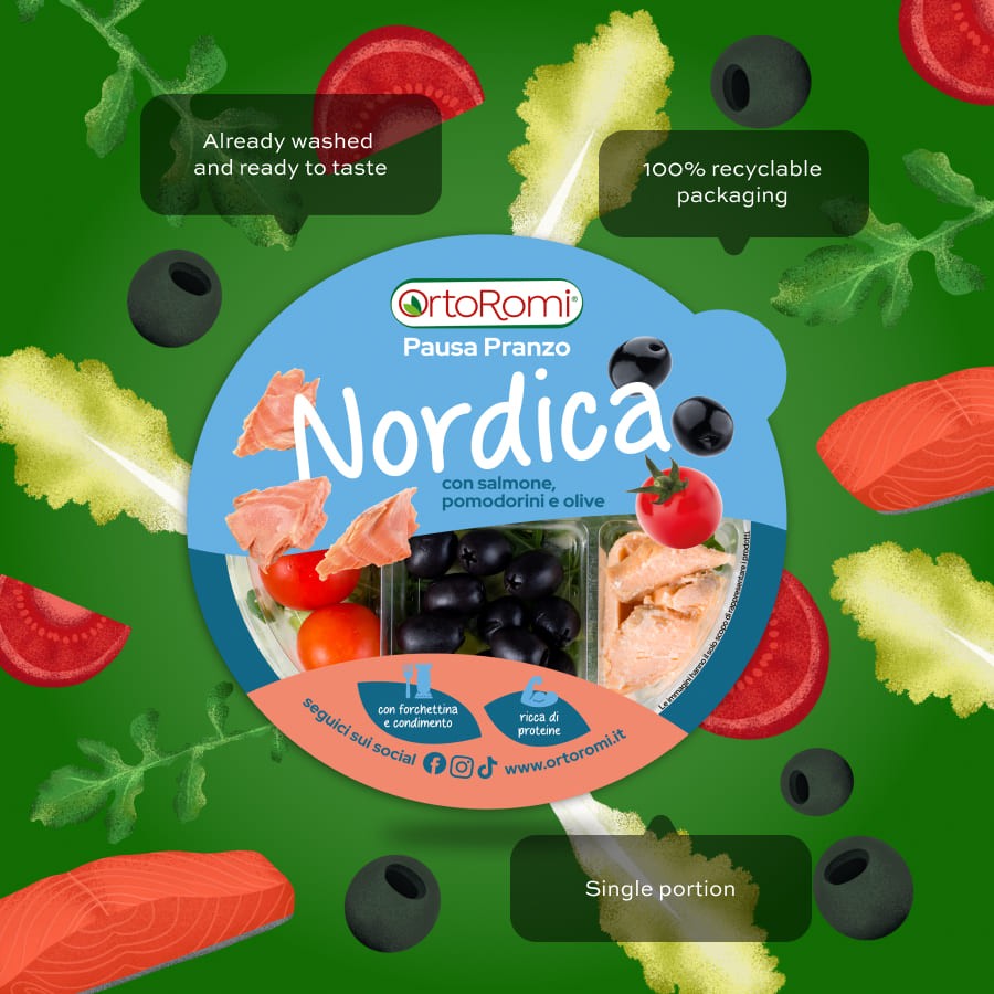 Single portion enriched salad with dressing kit included, ideal to enjoy wherever you are
